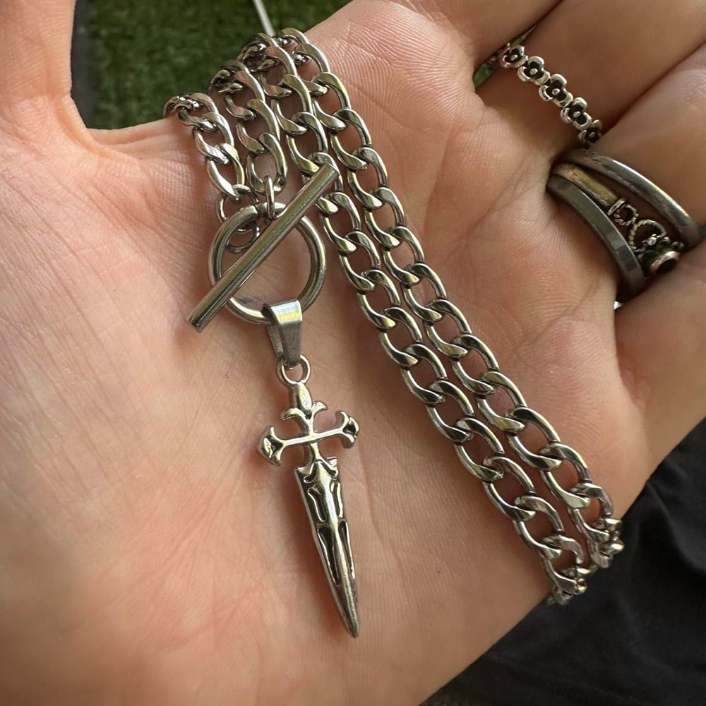 Super cute alternative gothic chrome cross spikey dagger chain 🖤 light weighted & comfy to wear
